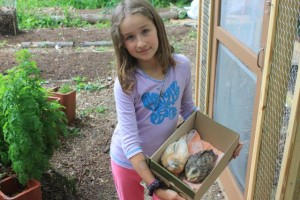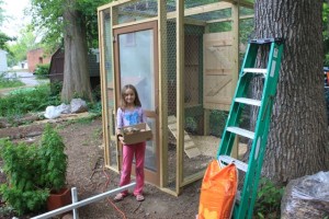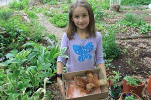 The baby chicks are now in their new home! My daughter was ecstatic during the transfer. Scored some plants today from a neighbor: celandine, variegated Solomon’s seal, monarda, fennel, black raspberries, alpine strawberries. Brewing up some compost tea…