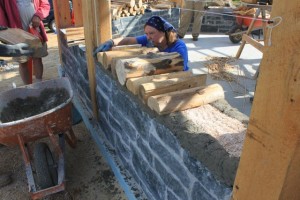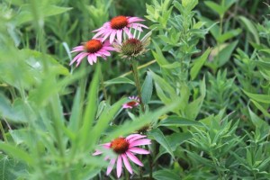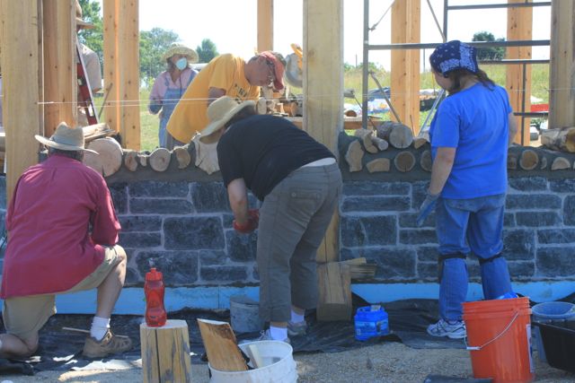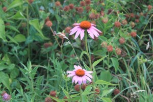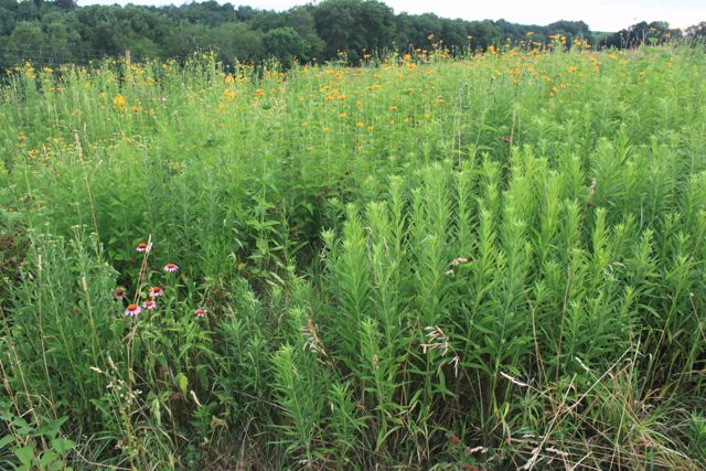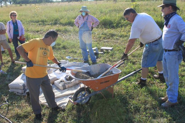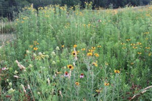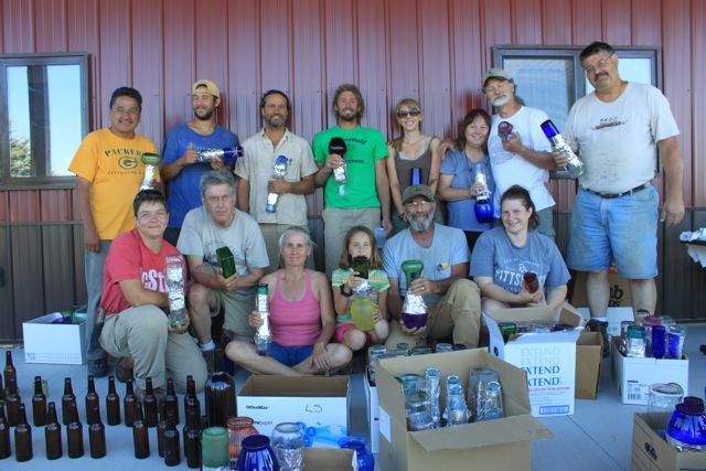 Richard and Becky Flatau of Wisconsin are here for the cordwood portion of our course in Fountain City. The bottles that you see will be incorporated into the cordwood walls. As I was wandering the land here one morning I discovered a piece of remnant prairie. We will be reestablishing savannah in the near future so this is a good sign that we are on the right track!