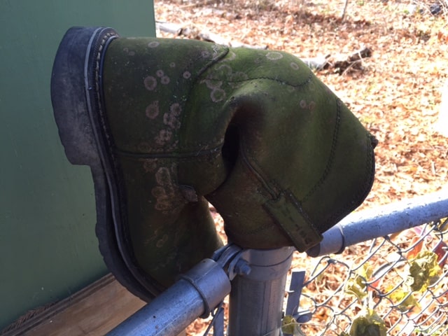 Eat and Be Eaten: the Organic Realm Winter creeps in slowly here in Southern Illinois. Everything is breaking down, being eaten by all kinds of critters and fungi. These boots were placed on this fence a year ago and they have turned an elegant shade of green! Wayne WeisemanDecember 8th, 2014|General Info| Share This Post FacebookLinkedInPinterestEmail