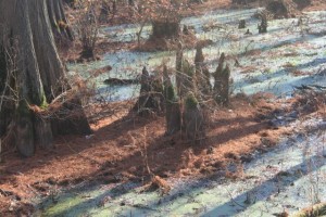 A Thanksgiving family hike in Southern Illinois to the Cache River, ancient Ohio River flood plain, and Herrin Pond, a remnant cypress swamp that somehow escaped the mass cutting and drainage characteristic of the early 20thy century. Quite warm for a late November day. Even the frogs and turtles were lounging about in the warm sun.