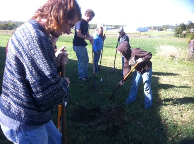 Today we began the process of putting in a food forest on the Southern Illinois University campus here in Carbondale, Illinois. Several students participated in digging swales and sheet mulching. It is located next to the university vermicompost operation. Once it is entirely sheet mulched we will be putting in some fruit and nut trees, and then the sky’s the limit.