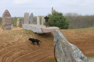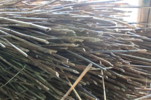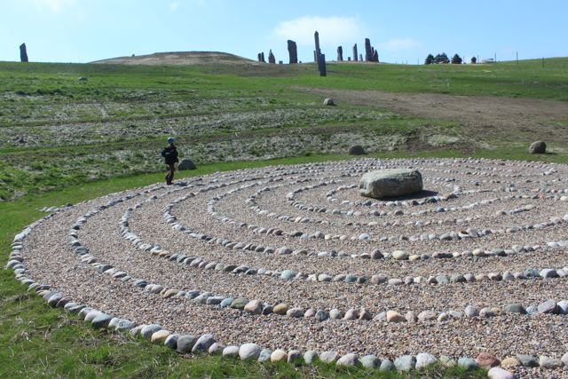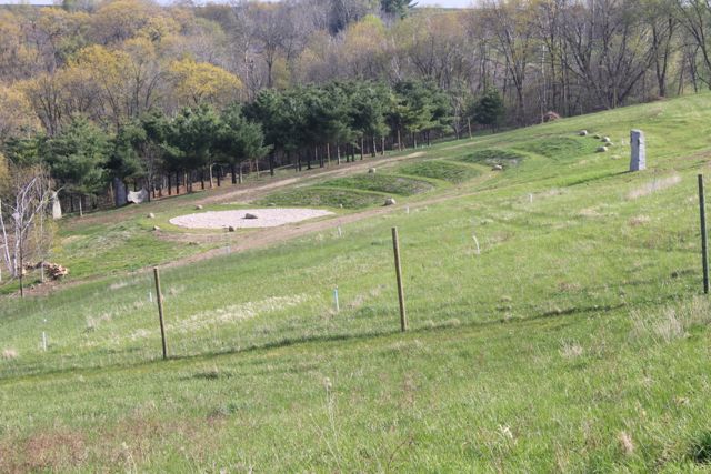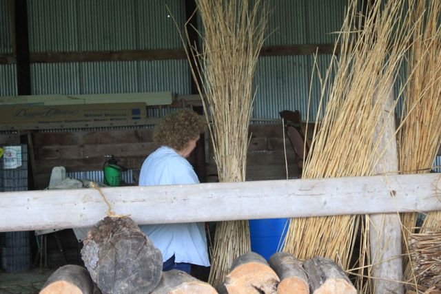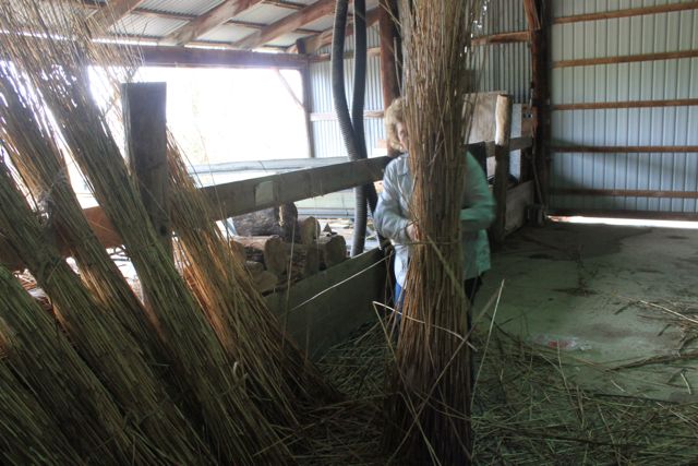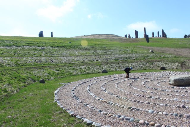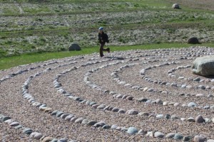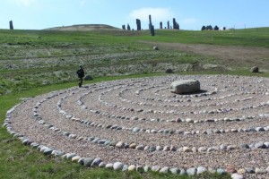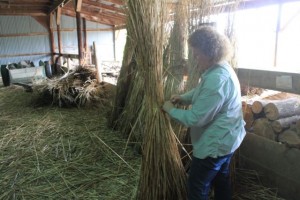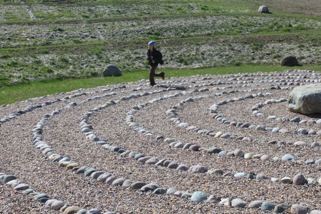 I just returned from Kinstone in Wisconsin where I have been working with Kristine Beck on her project for the last year and a half. We are gearing up for our natural building workshop in July. We will be constructing a cordwood building with a thatched roof. As you can see from these pics we accomplished a daunting task: three hundred bundles of phragmites for the roof! My daughter seems to know all the intracacies of walking (running!!!) the labyrinth…