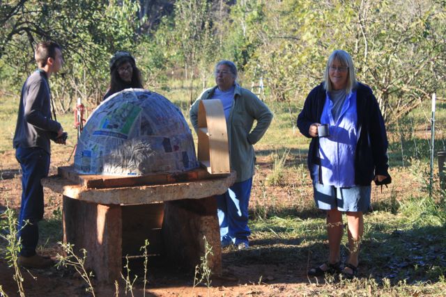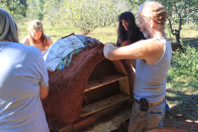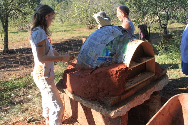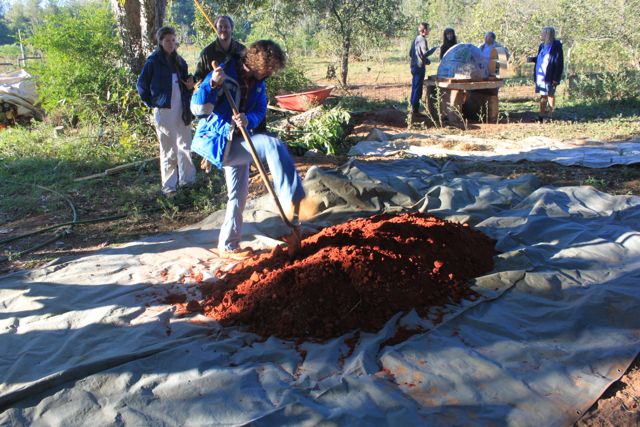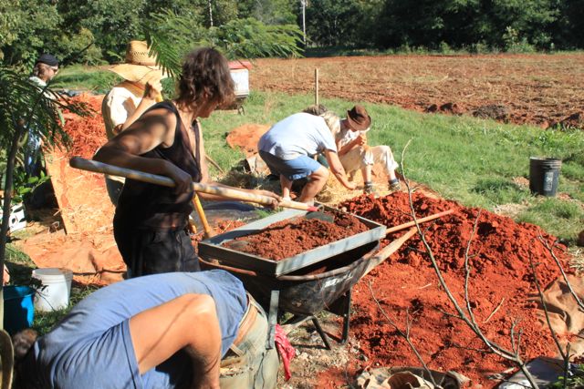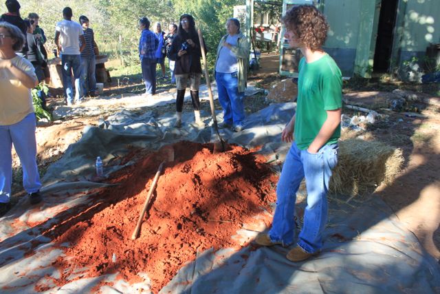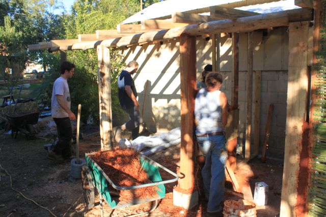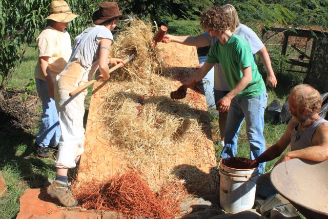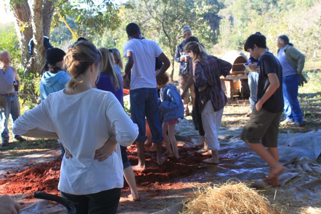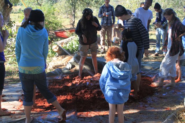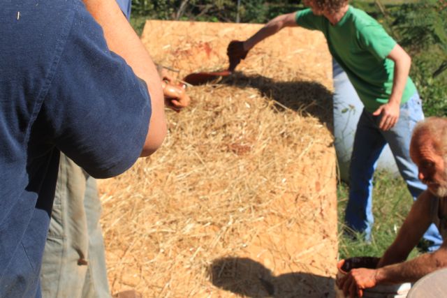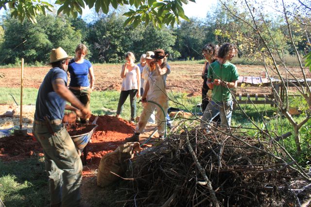 Cob oven, clay-straw slip, plastering, earth bag walls, hinge for humanure toilet seat, the list of activities continue to grow. Tomorrow is our last day and we will finish up all the many projects. It has been a blast. Looking forward to the next one with all the hospitable folks at Koinonia in Americus, Georgia!