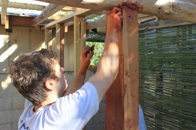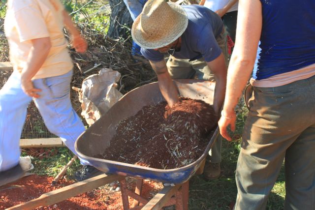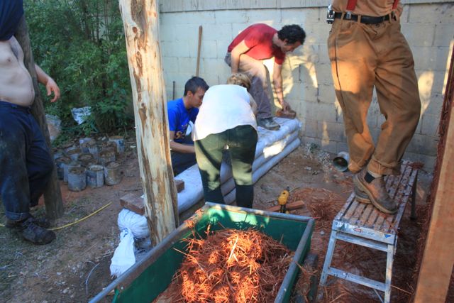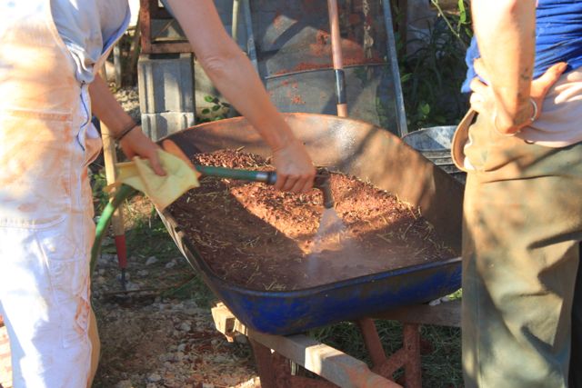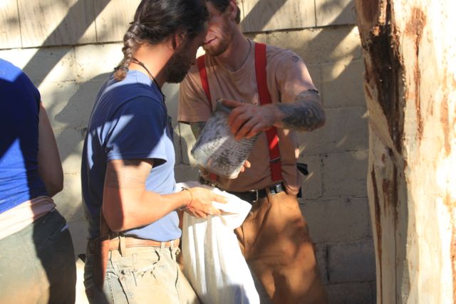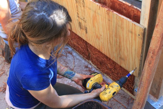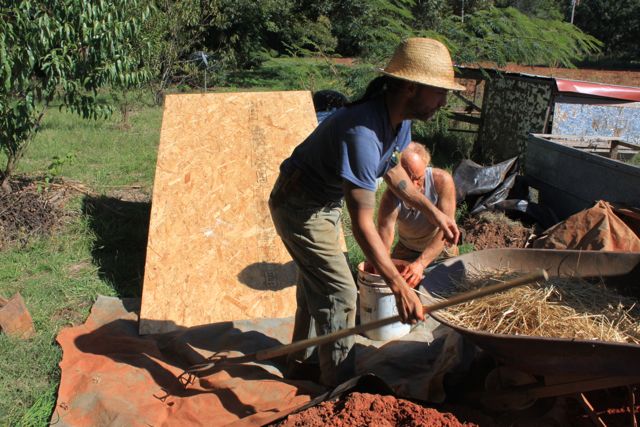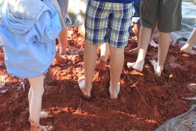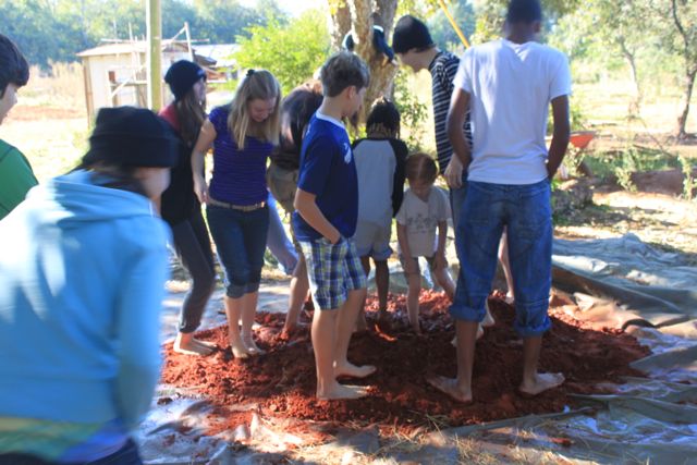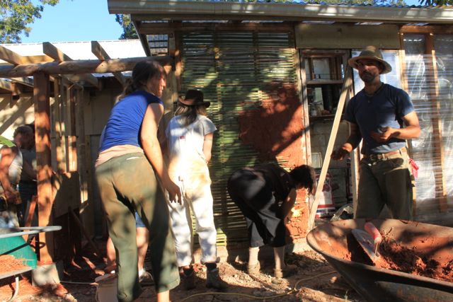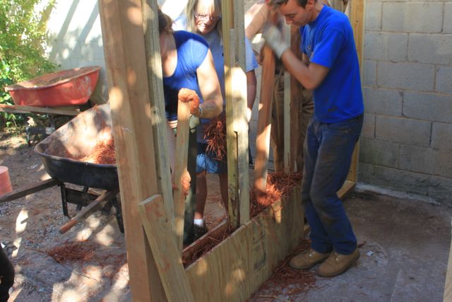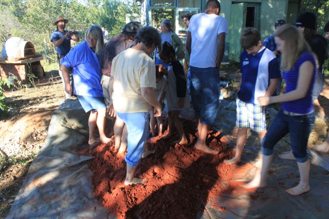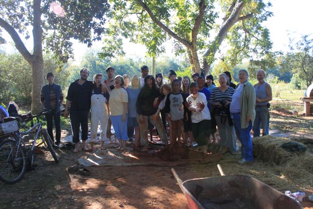 Cob oven, clay-straw slip, plastering, earth bag walls, hinge for humanure toilet seat, the list of activities continue to grow. Tomorrow is our last day and we will finish up all the many projects. It has been a blast. Looking forward to the next one with all the hospitable folks at Koinonia in Americus, Georgia!
