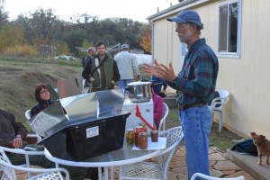 Mike Kluk was a student at our Grass Valley course three years ago. His property shares a border with the Sivananda Yoga Ashram where we are teaching. Our students paid a visit to the homestead twice during this course where Mike and his wife Susan presented seminars on season extension, solar cooking, food preservation, forest farming, and many other topics.