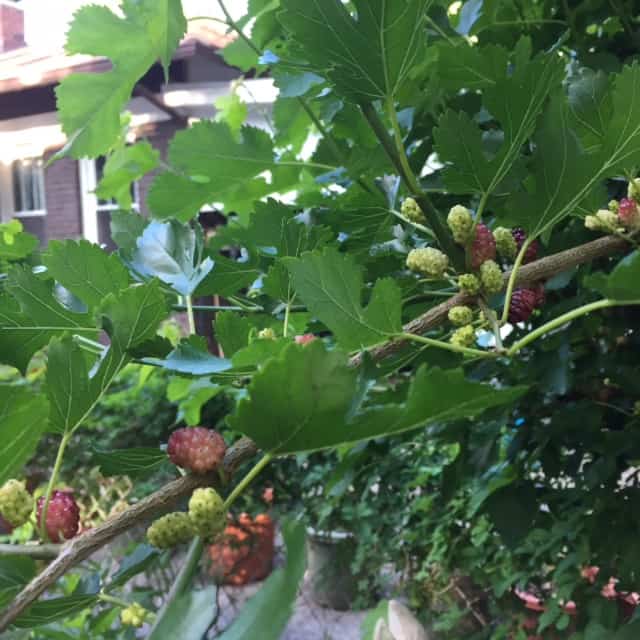 The mulberry is in the genus Morus. There are approximately 15 species of mulberry growing in temperate regions all over the world. Sometimes considered a “weed” tree, they are fast growing and reach heights of 30-50 feet. I have several mulberries growing in my yard and most them are pruned to the size of a tall shrub, but even with a hard pruning they produce prolifically year after year.