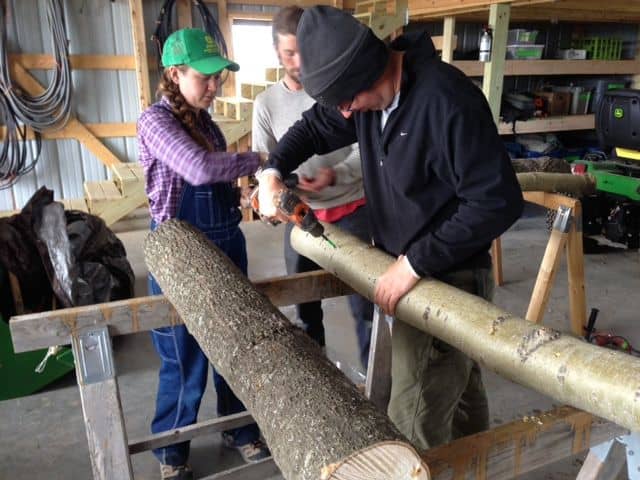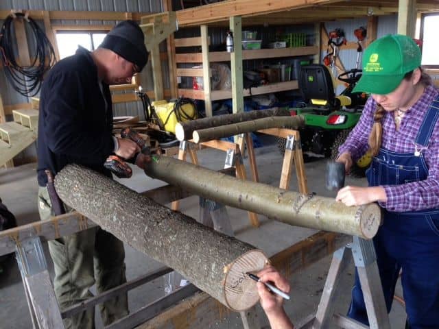 Preparing Mushroom Logs at Kinstone Oysters…logs…pounding plugs…wax… Wayne WeisemanMay 2nd, 2014|General Info| Share This Post FacebookLinkedInPinterestEmail