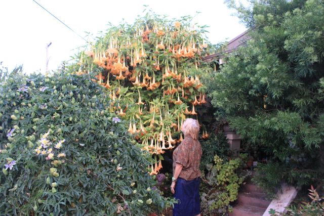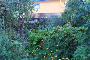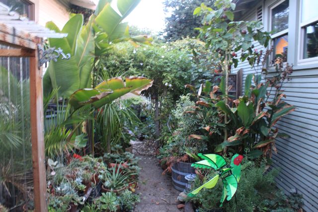 I arrived in Oakland last evening and gave a seminar for Hispanic women and men (predominately women) in gardening and Permaculture. I stayed with Suzanne who is an incredible gardener on a postage stamp sized piece of suburban property. Again I am taken aback by the creative dexterity that people like Suzanne are manifesting all over the country. I am always delightfully encouraged and enthused when I come across a place like hers. What may seem like the few and far between syndrome when it comes to putting these systems on the ground is becoming an illusion. The emergent feeling is that Permaculture and related systems will go viral over the next couple of years. We wish for all to jump on the band wagon. Thanks Suzanne for doing your work at home and in the community.