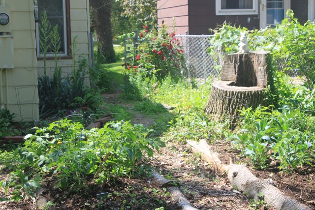 I just returned from ten days of teaching and the gardens around my house are no worse for wear. They are thriving abundantly! Worked for a couple of hours and this is all I need. This is becoming a self-sustaining plant paradise. Enough food to gorge ourselves on. No-dig, chop and drop, an organic matter bonanza. And the passion fruit has sprouted! Forget the large scale farm. Small, intensive systems…