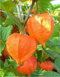 Ornamental – P. Alkekengii and its varieties are grown for the decorative value of their brilliantly colored, swollen calyces. These resemble miniature “Chinese Lanterns”, thus one of the common names, Chinese Lantern Plant. Other popular names include Alkekengi and Winter Cherry. These perennials spread by means of underground stems. In gardens, they are sometimes grown as annuals. The Chinese Lantern Plant and its varieties are very pretty in the garden in late summer. The stems bearing the large orange “fruits” are valued for cutting and bringing indoors during the fall and winter months. They last a long time and look quite handsome in a vase. “Fruits” refers to the swollen calyces of the white flowers, which open early in the summer. If they are to be brought in to decorate the house, the stems bearing the pretty calyces should be cut as soon as they have developed their full coloring.